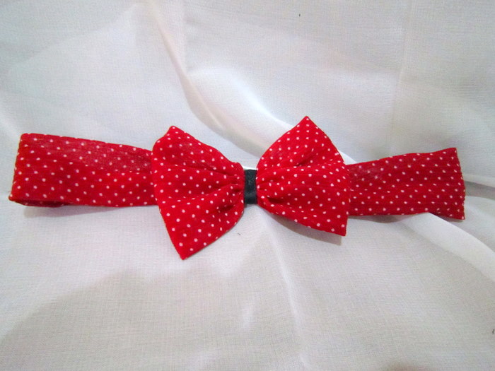 Note: There is a white elastic connecting the ends. Whereas for the Alice bow, the entire headband is covered (elastic not visible).